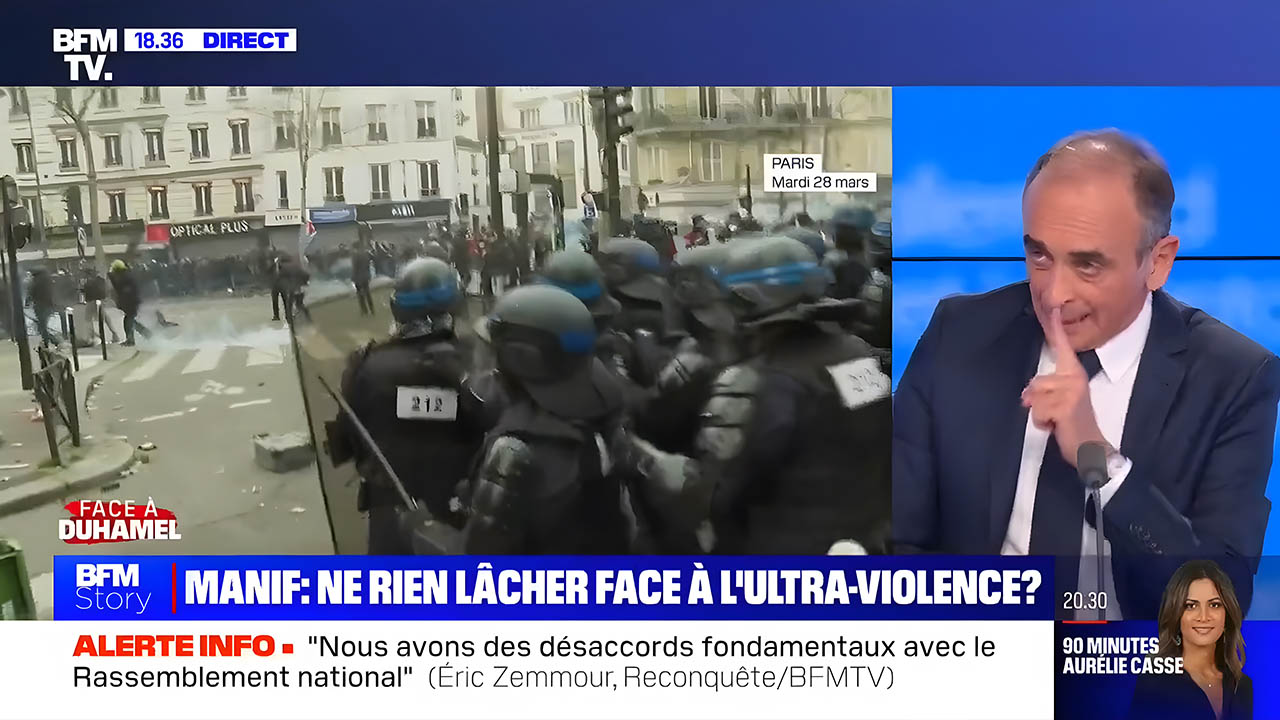 Pour Eric Zemmour, la violence policière contre les Français est légitime